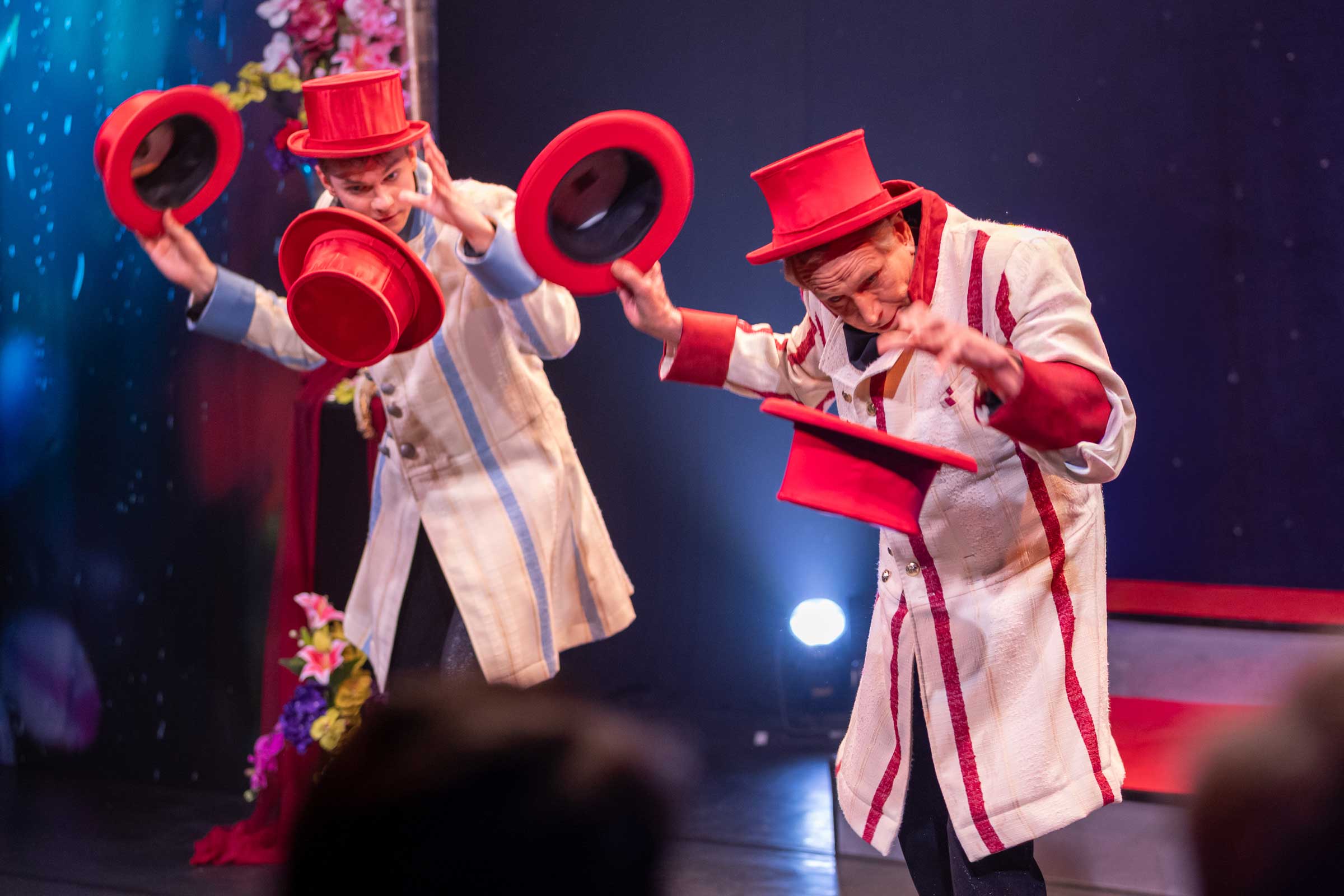 Artist*innen: König – Kris Kremo (Jonglage) | sein Bruder – Oleksij Sherbluik (Seifenblasen) | sein Sohn – Harrison Kremo (Jonglage) | seine Tochter – Amelie Kamps (Luftartistik) | ihr Gatte – David Meraz (Kontersion) | Schauspiel: Die Dame – Rosa-Halina Dahm (Schauspiel) | Sänger*innen: Luna – Lea-Johanna Montazem (Sopran) | Gräfin – Paula Meyer (Mezzosopran) | Graf – Claus Renzelmann (Bariton) | Compte – Ramon Mundin (Tenor) | Maestro – James Williams (Tenor & Klavier) | Damen und Herren – Urania Voices (Chor der Fördermitglieder Urania Theater) | Vor, hinter und neben der Bühne: Konzept & Regie – Bettina Montazem | Musikalische Leitung – James Williams | Coaching Stimme – Hartmut Singer | Co-Regie Artistik – Alexander Mitin | Walzer Andreas Schmitz | Kostümdesign – Atelier Maria Lucas unter der Leitung von Andre Lucas | Lichtdesign – Jens Günther | Bühne & Plakat – Benedikt Wallisser | Blumenarrangement – Kreuzblume Köln | Fotografie: Blumenmotive – Kathrin Herold